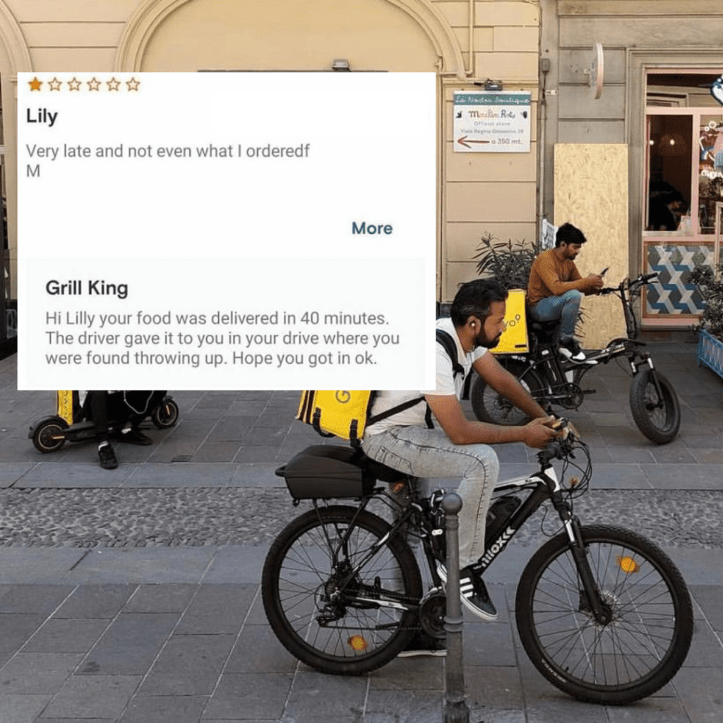 Lily here, for example, couldn’t wait to leave a bad review. Unfortunately for her, her whole complaint became null because of it. Apparently, not only was she drunk when the food delivery driver arrived, but she was also throwing up outside! Ew!