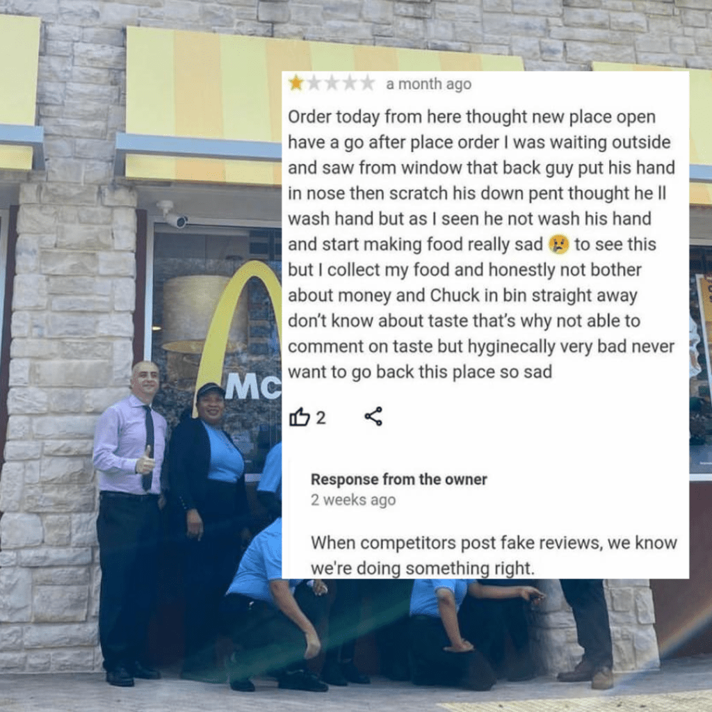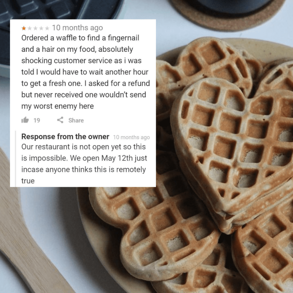Look, if you’re going to lie and leave a false review, at least make sure that your story makes sense. Otherwise, you might end up like this reviewer who was caught out. The manager of this establishment should be a lawyer.