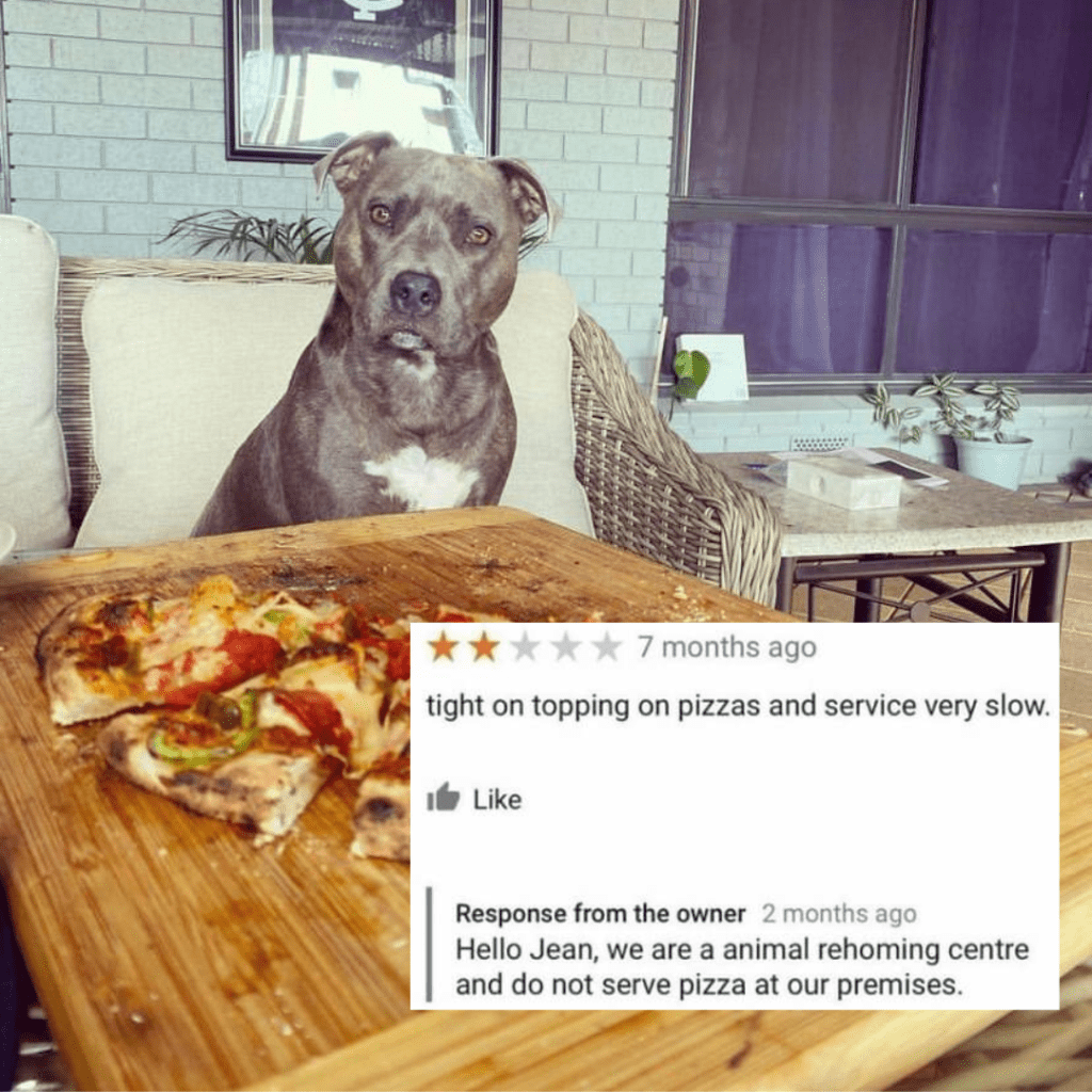 What’s unreasonable, though, is leaving a bad review for a place that doesn’t serve pizza! Even worse, leaving a bad review for a place that’s not even a restaurant, to begin with! Pay attention to what you’re doing, people! The poor dogs!