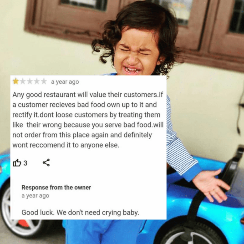 Sometimes, though, customers are actually in the right! Unbelievable, we know, but it happens! That’s definitely the case here! We don’t know about you, but if a restaurant owner called us a crybaby, we wouldn’t be coming back either.
