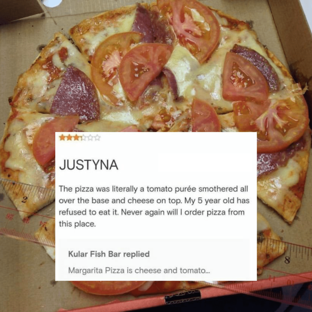 Apparently, the pizza was not up to her and her five-year-old standards! According to the mom, their pizza was nothing but tomato purée with cheese on top. As the owner of the restaurant reminded her, though, those are precisely the ingredients that go on a Margherita pizza!
