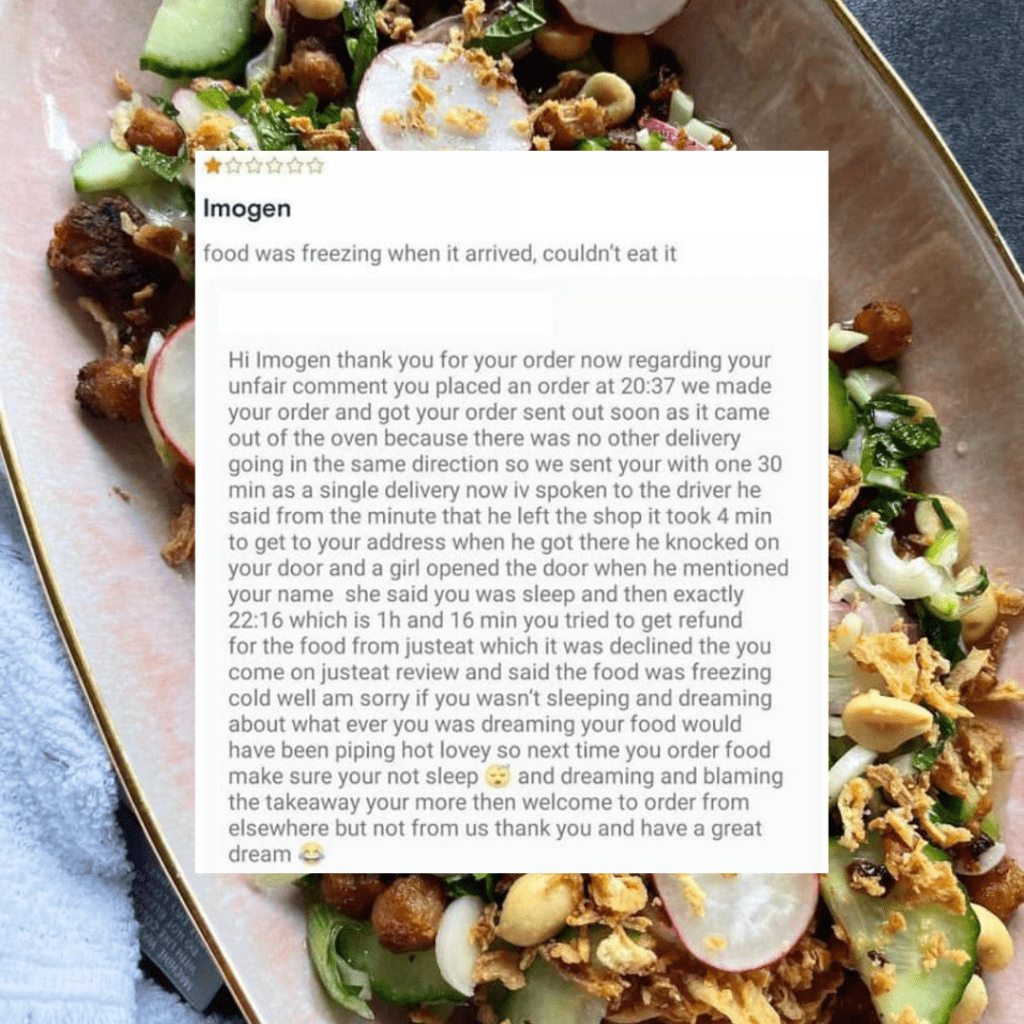 The thing with this review is we’re not really sure who’s in the wrong here. On one hand, there are a bunch of bad restaurants out there who wouldn’t hesitate to straight-up lie about the quality of their food. On the other one, bad customers are everywhere, and they also wouldn’t mind lying!