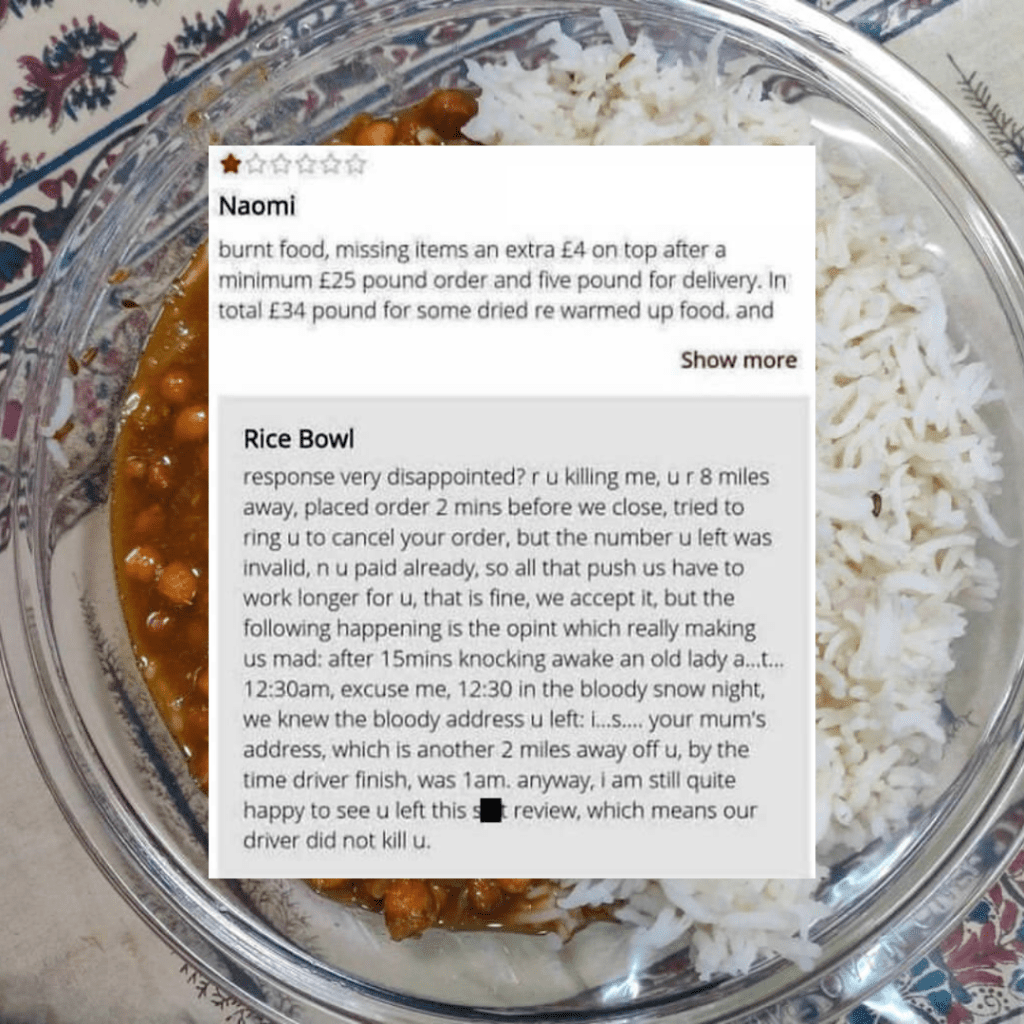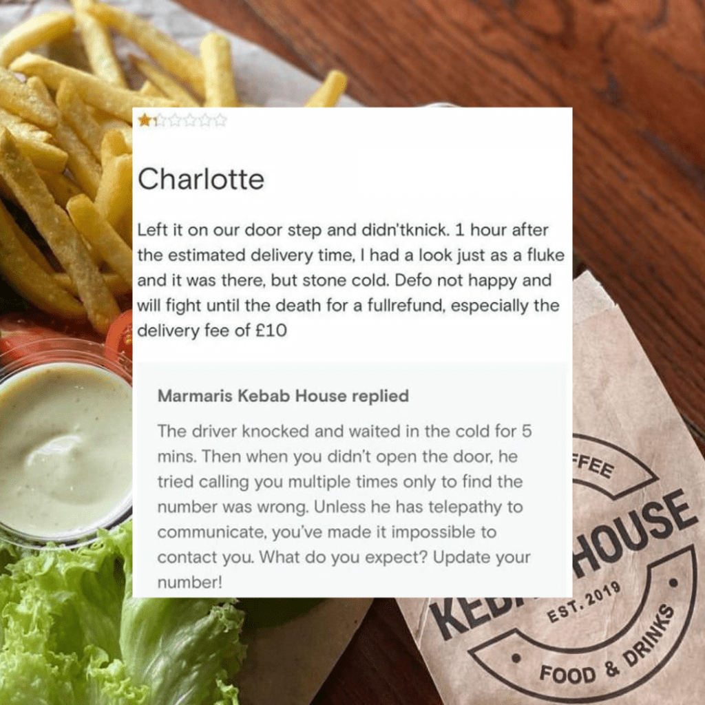 If you’re going to order your food in the middle of the night while being drunk, at least wait until it’s morning and you’re sober to leave your bad review! That’s just common courtesy, but some people seemed to have skipped this lesson in school!